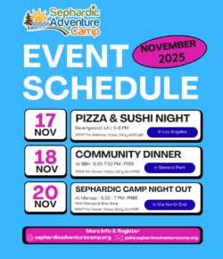 Welcome to Sephardic Adventure Camp! We are a warm, welcoming Jewish community–big enough to offer a wide variety of activities but small enough to know every camper by name. A summer spent at Sephardic Adventure Camp builds independence and self-reliance as well as Jewish friendships and identity that last a lifetime. Explore our website to learn more about our camp, and then call us to discuss your child’s interests. We’re looking forward...